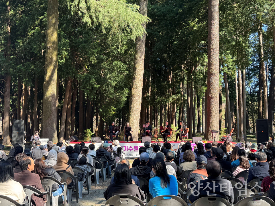 양산시 동면에 위치한 법기수원지 내 마당이 지난 1일 활기 넘치는 음악의 향연으로 물들었다. 바로 동면 주민자치회가 주관한 법기수원지 숲속음악회가 성황리에 개최된 것이다.