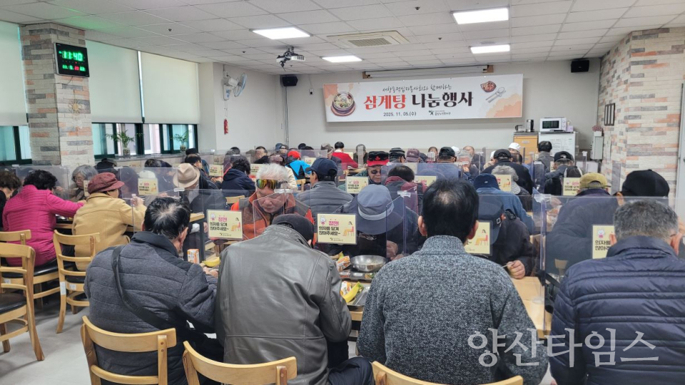 웅상노인복지관(관장 이명진)은 11월 5일, 서창동적십자봉사회(회장 황미경)의 후원으로 지역 어르신들을 위한 삼계탕 나눔행사를 진행했다고 밝혔다.