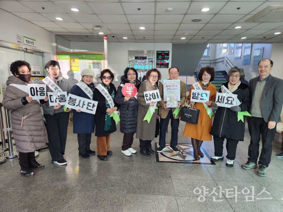 (재)양산시복지재단 웅상노인복지관(관장 이명진) 아웅다웅봉사단은 지난 2월 9일, 더 살기 좋은 웅상을 만들기 위한 실천의 일환으로 새해맞이 인사캠페인과 ‘아웅다웅 온정나누기’ 모금활동을 진행했다.