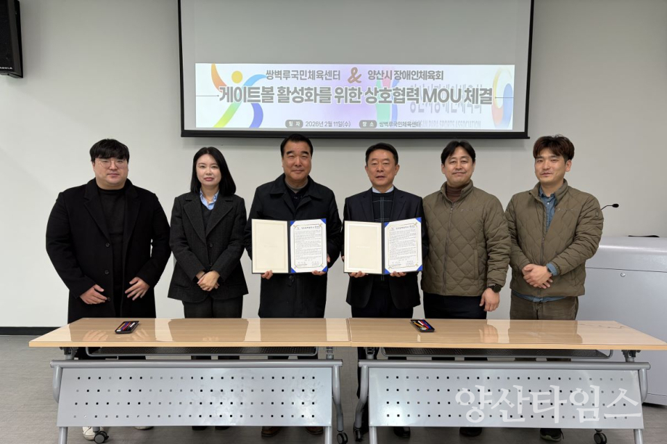 양산시시설관리공단(이사장 박성관) 쌍벽루국민체육센터는 양산시장애인체육회와 게이트볼장 운영 활성화 및 장애인 체육복지 증진을 위한 업무협약(MOU)을 체결했다고 19일 밝혔다.